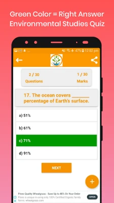 The application is very easy to use and has been designed very carefully keeping in mind the needs of the students. When a student/user makes a mistake, the application indicates and also shows the correct answer. Take the Environment tests repeatedly and analyze your improved results each time.