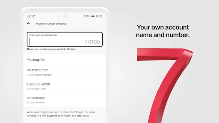 Set your own account number, for example, your birthday or wedding anniversary. You can name the account whatever you like.