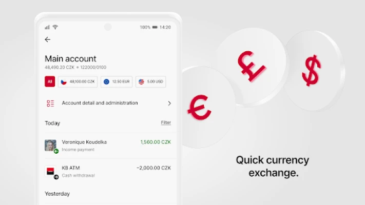 Use multiple currencies in one account. You can exchange money within your account in a few seconds and simply pay in the local currency abroad, wherever you go.