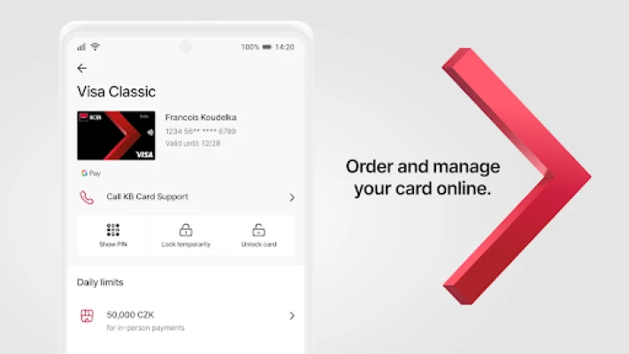 In KB+ you can order, unlock, and lock a card or view the PIN. Choose one of the designs offered and add your card to Google Pay.